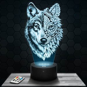 Wolf mandala 3D LED LAMP with a base of your choice!