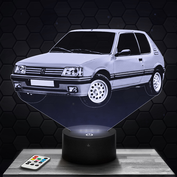 Bring a touch of nostalgia and style to your interior with this 3D lamp inspired by the legendary 205 GTI. Its finely engraved acrylic design highlights every detail of this iconic car, offering a luminous and dynamic ambiance. The touch LED base offers 7 colors to customize your lighting.