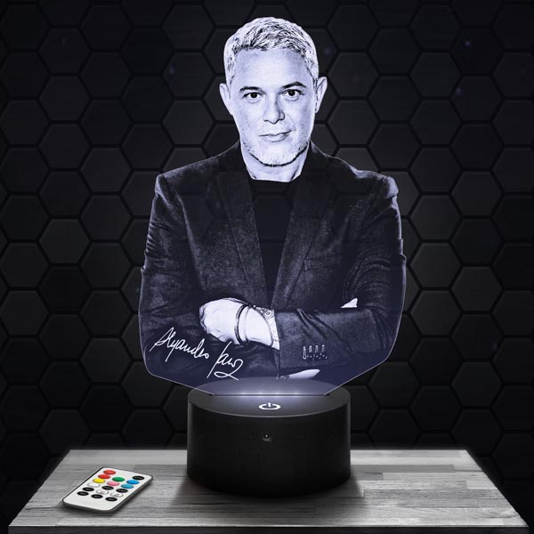 Light up your space with our 3D lamp featuring Alejandro Sanz, the Spanish singer with romantic talent. The precision-engraved acrylic glass plate captures the details of this talented artist, paying tribute to his influence in romantic pop music. Its touch-sensitive RGB LED base allows you to choose from 7 vibrant colors, creating a dynamic and inspiring ambiance. Ideal for the living room, bedroom, or office, this lamp will become the focal point of your decor.