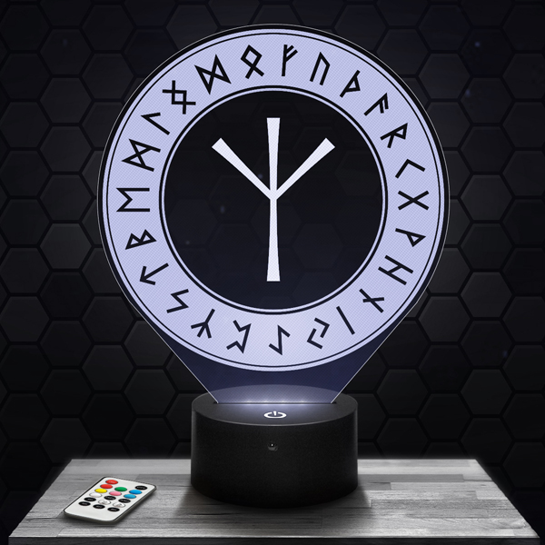 Bring a mystical ambiance to your interior with the 3D Rune Algiz lamp, a luminous piece that embodies protection and spirituality. Its finely engraved acrylic glass design highlights every detail of the rune, symbolizing strength and defense. The touch LED base offers a choice of 7 colors, creating a soothing and inspiring atmosphere.