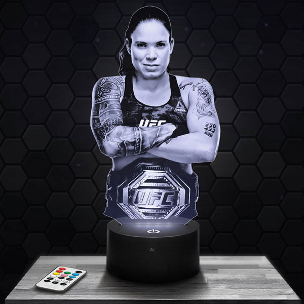 When you turn on the base, the lamp’s visual illuminates, creating a fascinating hologram effect. With its 7 selectable colors, you can customize the ambiance according to your preferences. Whether in the living room, bedroom, or as a desk lamp, the Amanda Nunes The Lioness UFC MMA lamp will bring a touch of originality to your space.
