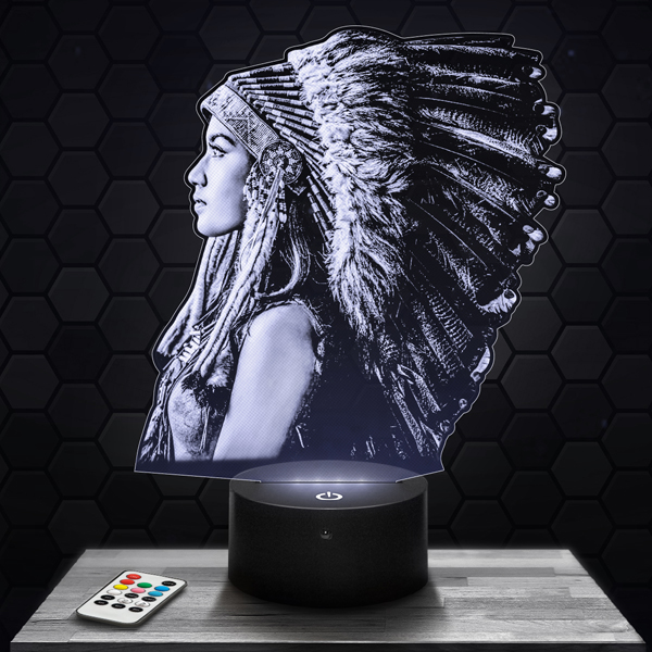 Bring a unique ambiance to your interior with this 3D Native American lamp, a luminous piece that celebrates the richness and depth of Native American traditions. Its finely engraved acrylic glass design highlights the iconic patterns and symbols of this ancestral culture. The touch LED base offers a choice of 7 colors, creating a soothing and inspiring atmosphere.