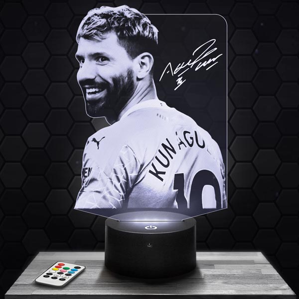 Fascinating, innovative and completely original, the Argentina – Sergio Aguero 3D LED Lamp is the must-have of the moment!Our lamps consist of an engraved and laser cut plexiglass plaque and an illuminated LED base. The engraved pattern lights up when the base is switched on, giving an impressive 3D hologram effect! For the living room, bedside or desk, this lamp lends a modern touch to your home!In addition to the impressive optical illusion effect, this Argentina – Sergio Aguero 3D LED lamp‘s soothing mood lighting is ideal for intimate atmospheres.Thanks to the range of illuminated bases available on Pictyourlamp.com, you can change colours whenever you like. Simply use the touch-sensitive controls on the base, or the remote control supplied with most of the bases, so you don’t even have to get up. Choose an illuminated base that features your favourite design!All our products are produced by laser engraving and cutting in our workshops located in France. We produce your orders within 24 hours (excluding weekends and holidays) and deliver to your door within 48 hours throughout Europe.In terms of electric energy consumption, all of our 3D Lamps are extremely economical. That’s because our designs consume 3 to 5 watts, which is very little for a light fixture.All our products have a 1-year guarantee. Quality is assured. If your base should be defective during this period, we will replace it as soon as possible. Nevertheless, our products are particularly reliable: the 3D lamps are designed for a minimum duration of 50,000 hours, which is equivalent to more than 5 years based on keeping the lamp on for 24 hours a day, 7 days a week, 365 days a year.Don’t wait, order your Argentina – Sergio Aguero 3D LED lamp now. We will send it to you today (except weekends) and you will receive it within 48 hours.
