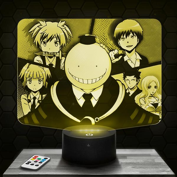 Fascinating, innovative and completely original, the Assassination Classroom 3D LED Lamp is the must-have of the moment!Our lamps consist of an engraved and laser cut plexiglass plaque and an illuminated LED base. The engraved pattern lights up when the base is switched on, giving an impressive 3D hologram effect! For the living room, bedside or desk, this lamp lends a modern touch to your home!In addition to the impressive optical illusion effect, this Assassination Classroom 3D LED lamp‘s soothing mood lighting is ideal for intimate atmospheres.Thanks to the range of illuminated bases available on Pictyourlamp.com, you can change colours whenever you like. Simply use the touch-sensitive controls on the base, or the remote control supplied with most of the bases, so you don’t even have to get up. Choose an illuminated base that features your favourite design!All our products are produced by laser engraving and cutting in our workshops located in France. We produce your orders within 24 hours (excluding weekends and holidays) and deliver to your door within 48 hours throughout Europe.In terms of electric energy consumption, all of our 3D Lamps are extremely economical. That’s because our designs consume 3 to 5 watts, which is very little for a light fixture.All our products have a 1-year guarantee. Quality is assured. If your base should be defective during this period, we will replace it as soon as possible. Nevertheless, our products are particularly reliable: the 3D lamps are designed for a minimum duration of 50,000 hours, which is equivalent to more than 5 years based on keeping the lamp on for 24 hours a day, 7 days a week, 365 days a year.Don’t wait, order your Assassination Classroom 3D LED lamp now. We will send it to you today (except weekends) and you will receive it within 48 hours.