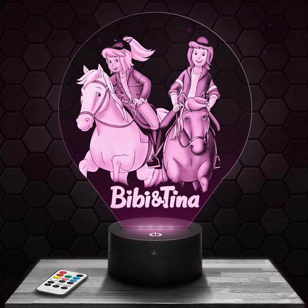 Relive the captivating adventures of Bibi and Tina with our 3D lamp, perfect for fans of these equestrian heroines. Engraved on an acrylic plate, this lamp illustrates the two friends in a moment of friendship and adventure. The RGB LED base, adjustable via touch or remote control, allows you to choose from seven enchanting colors, immersing the room in the magical world of Bibi and Tina.
