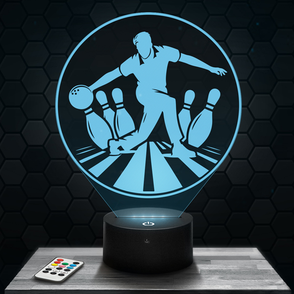 Bring a unique ambiance to your interior with this 3D Bowling Lamp, a captivating piece that evokes the energy and dynamism of this popular sport. Its finely engraved acrylic glass design highlights every detail of the pins and ball, creating a striking visual effect. The touch LED base offers a choice of 7 colors, allowing you to customize the lighting according to your desires.