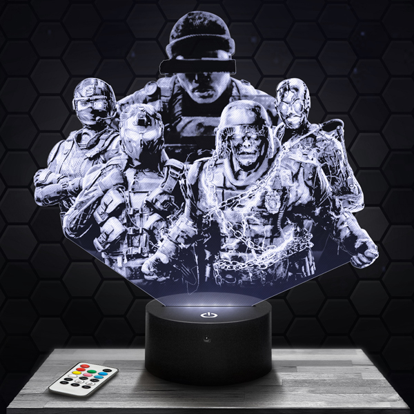 Immerse yourself in the world of Call Of Duty Black Ops 6 with this unique 3D lamp, which embodies the energy and action of this legendary game. Its finely engraved acrylic glass design highlights every iconic detail, bringing the intensity of the battlefield into your home. The touch LED base offers a choice of 7 colors, creating an immersive and dynamic atmosphere.