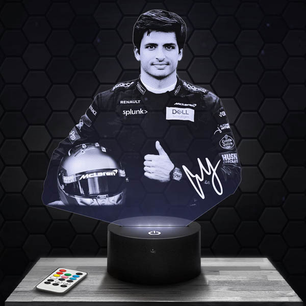 If you’re looking for the perfect gift for a motorsport enthusiast, look no further! The Carlos Sainz F1 Driver lamp is the ideal gift for a birthday, Christmas, or any other special occasion. With its included remote control, you can easily change colors and create a unique ambiance. Furthermore, our catalog offers over 500 models to choose from, so you will certainly find the perfect lamp for every Formula 1 fan.