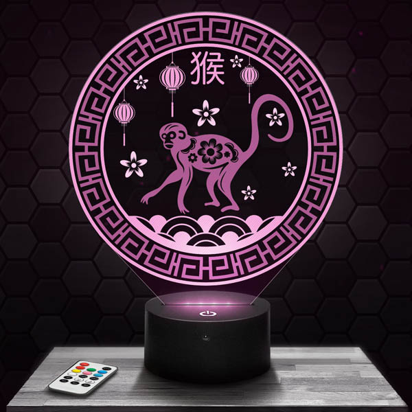 Discover our 3D lamp of the Chinese zodiac sign Monkey, a true gem for astrology and decoration enthusiasts. Carefully crafted in our workshops in Clermont-Ferrand, this lamp features a high-definition engraved and laser-cut acrylic glass plate, offering an exceptional visual effect. Its Black RGB LED touch base with remote control allows you to choose from 7 different colors, creating a fascinating hologram effect. Whether in the living room, bedroom, or as a desk lamp, this lamp will bring a unique touch to your interior.