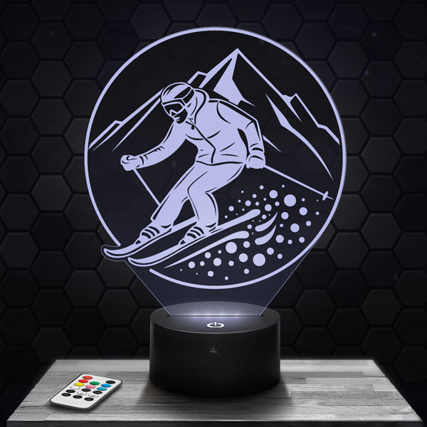 Express your passion for cross-country skiing with this unique 3D lamp, a luminous piece that captures the essence and beauty of this iconic sport. Its finely engraved acrylic glass design highlights every detail of the skier in action. The touch LED base allows you to choose up to 7 colors, for a dynamic and inspiring atmosphere.