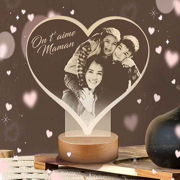 Offrez lui une lampe photo personnalisée ! Créez votre lampe en quelques clics grâce à notre configurateur ! Votre commande sera traitée par nos graphistes expérimentés et gravée au laser avec la meilleur technologie du marché!