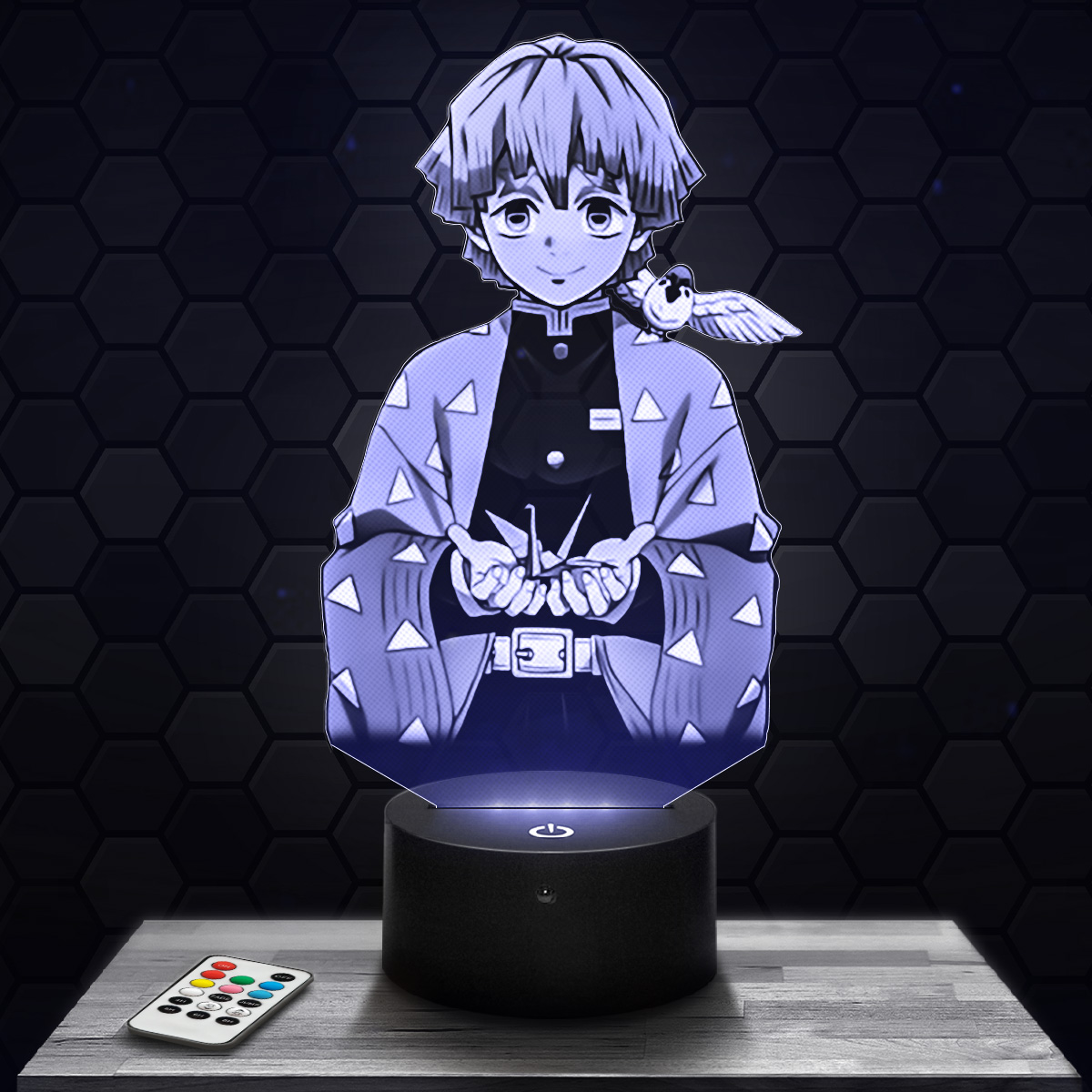 When you turn on the lamp, the visual lights up thanks to the base, creating a fascinating hologram effect. With its 7 colors to choose from, you can customize the atmosphere according to your preferences. Whether for the living room, the bedroom or as a desk lamp, this Slayer Zenitsu Agatsuma Slayer lamp will add a unique touch to your space.