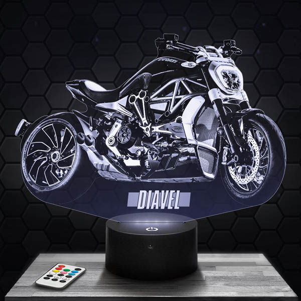 Looking for the perfect gift for a passionate biker? Look no further! The Ducati Diavel Moto 3D lamp is the ideal gift for a birthday, Christmas, or any other special occasion. With its visual that lights up as soon as the base is turned on, this lamp offers a striking hologram effect that will delight thrill-seekers. Moreover, our catalog offers over 500 models to choose from, so you will definitely find the lamp that matches their tastes.