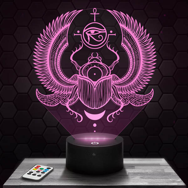 The Egyptian scarab is much more than a simple 3D lamp. He embodies all the richness and spirituality of ancient Egypt. Its acrylic glass plaque engraved in high definition and laser cut in our workshops in Clermont-Ferrand represents the famous scarab, a symbol of renaissance and protection. This Egyptian talisman is renowned for bringing happiness and bringing positive energy in your life. Treat yourself to a real piece of history and beliefs with this unique lamp of its kind.