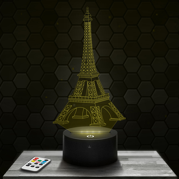 Bring a touch of Paris to your interior with this 3D Eiffel Tower lamp, a luminous piece that embodies the charm and majesty of this iconic monument. Its finely engraved acrylic glass design highlights every architectural detail of the Eiffel Tower. The touch LED base allows you to choose up to 7 colors, creating a romantic and sophisticated ambiance.