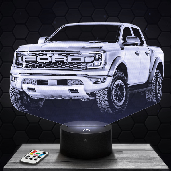 Express your passion for the Ford Ranger Raptor with this unique 3D lamp, a luminous piece that embodies the robustness and elegance of this iconic vehicle. Its finely engraved acrylic glass design highlights every bold detail and dynamic line of the Raptor. The touch LED base allows you to choose up to 7 colors, for a captivating and personalized ambiance.