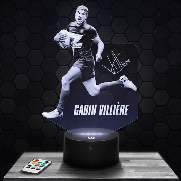 Discover the Gabin Villiere Rugby lamp, an essential product for all rugby fans. This 3D lamp features a high-definition engraved acrylic glass plate, laser-cut in our workshops in Clermont-Ferrand. Its Black LED RGB touch base with remote control offers a unique experience.