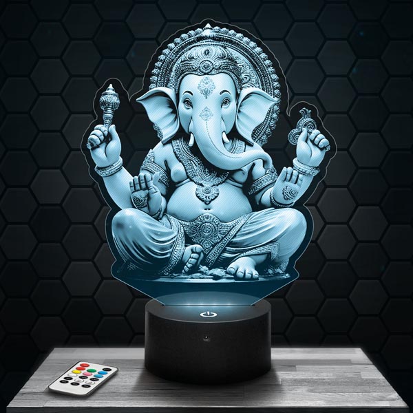 Our Ganesh God 3D lamp illuminates your path by removing obstacles, in harmony with the god of wisdom, intelligence, education, and prudence in Hinduism. Featuring a detailed acrylic engraving of Ganesh, this lamp casts a light that invites calmness and concentration. The RGB LED base, customizable in seven colors via touch or remote control, creates an environment conducive to meditation and reflection.