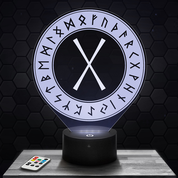 Bring a unique ambiance to your interior with the 3D Rune Gebo lamp, a captivating piece that embodies harmony and balance. Its finely engraved acrylic glass design highlights the intricate details of the rune, symbolizing gift and exchange. The touch LED base offers a choice of 7 colors, creating a soothing and mystical atmosphere.