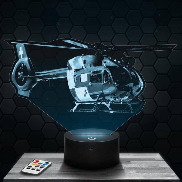 Illuminate your space with our 3D lamp representing a helicopter, a symbol of flight and innovation in the aviation industry. The precision-engraved acrylic glass plate captures the details of this aircraft, paying tribute to its crucial role in transportation and rescue missions. Its touch-sensitive RGB LED base allows you to choose from 7 vibrant colors, creating a dynamic and inspiring ambiance. Ideal for the living room, bedroom, or office, this lamp will become the focal point of your decor.