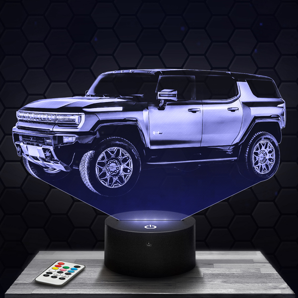 Bring a touch of sophistication to your interior with this 3D Hummer lamp, a luminous piece that embodies the robustness and style of this iconic vehicle. Its finely engraved acrylic glass design highlights every distinctive detail of the Hummer. The touch LED base offers a choice of 7 colors, creating a soothing and modern atmosphere.