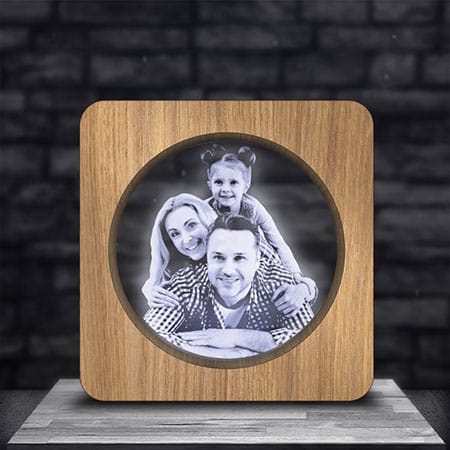 7 colours Wood Look LED Photo Frame with touch-sensitive + remote control - 7.5 x 7.5 inches