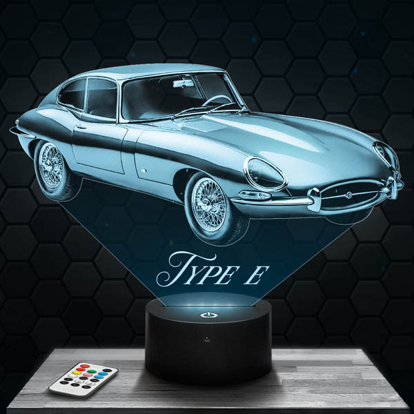 Discover the “Jaguar Type E Car” 3D lamp from our collection of 3D lamps. This lamp is the ideal choice for all vintage car enthusiasts. With its high-definition engraved and laser-cut acrylic glass plate made in our workshops in Clermont-Ferrand, this lamp offers a realistic and captivating visual. Its Black RGB LED touch base with remote control allows you to choose from 7 different colors, creating a fascinating hologram effect. Whether it’s for the living room, bedroom, or as a desk lamp, the “Jaguar Type E Car” lamp will bring a touch of elegance and sophistication to your interior.