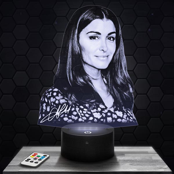 Illuminate your space with our 3D lamp featuring Jenifer, the French pop singer with resounding success. The precision-engraved acrylic glass plate captures the details of this talented artist, paying tribute to her influence in pop music. Its touch-sensitive RGB LED base allows you to choose from 7 vibrant colors, creating a dynamic and inspiring ambiance. Ideal for the living room, bedroom, or office, this lamp will become the focal point of your decor.