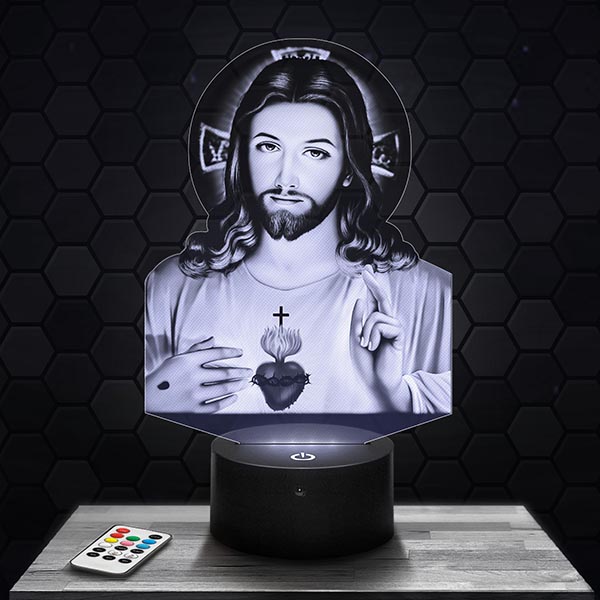 Discover our “Jesus Christ Religion” 3D lamp which combines both a modern aesthetic and a deep symbolism. Thanks to its acrylic glass plate engraved in high definition and laser cut in our workshops in Clermont-Ferrand, this lamp offers an exceptional visual. Its black LED RVB Tactile LED light with remote control allows you to choose from 7 different colors, thus creating a fascinating hologram effect. Whether for the living room, the bedroom or as a desk lamp, this lamp will bring a spiritual and soothing atmosphere to your space.