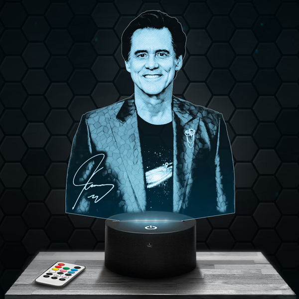 Express your admiration for Jim Carrey with this original 3D lamp, a luminous piece that captures all the energy and charisma of this iconic actor. Its finely engraved acrylic glass design highlights every facial expression and unique detail of his characters. The touch LED base allows you to choose up to 7 colors, for a joyful and dynamic atmosphere.