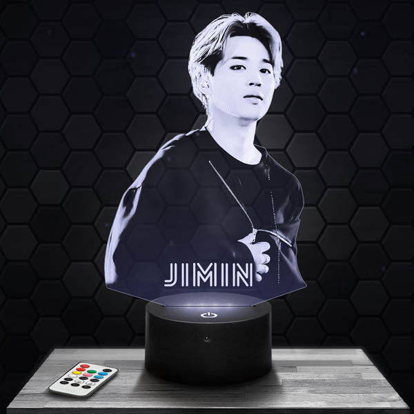 Discover our Jimin BTS 3D lamp, an essential product for all fans of this famous K-pop singer. With its high-definition engraved acrylic glass plate, laser-cut in our workshops in Clermont-Ferrand, this lamp offers exceptional visual quality. Its Black RGB LED touch base with remote control allows you to choose from 7 different colors, creating a fascinating hologram effect. Whether it’s for the living room, bedroom, or as a desk lamp, this lamp is ideal for creating a unique atmosphere and adding a touch of style to your interior.