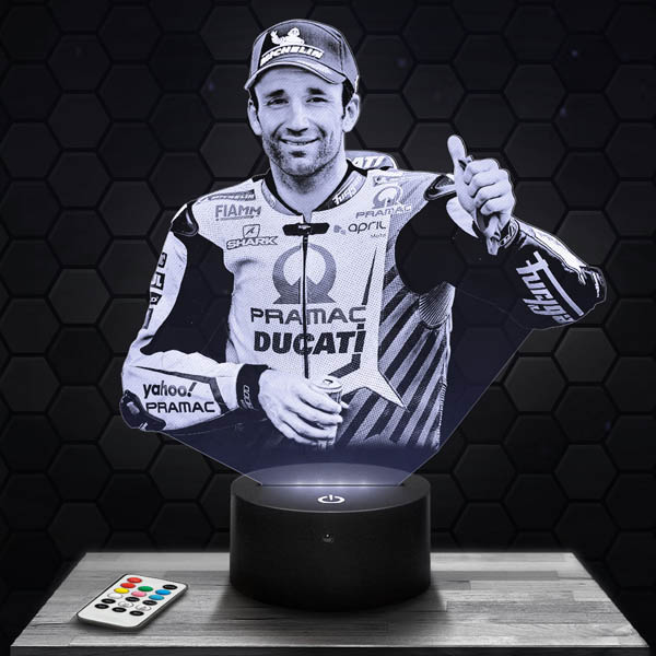 Are you looking for a birthday or Christmas gift for a motorcycle enthusiast? Look no further! The Johann Zarco Moto GP Pilot lamp is the perfect gift. With its included remote control, you can easily change the colors and create a unique atmosphere. Moreover, our catalog offers over 500 models to choose from, so you will certainly find the one that suits your tastes. Don’t miss the opportunity to own this exceptional 3D lamp. With low energy consumption and a manufacturing lead time of only 24 hours, you can quickly enjoy this unique piece. Order now and let yourself be enchanted by the magic of the Johann Zarco Moto GP Pilot lamp.