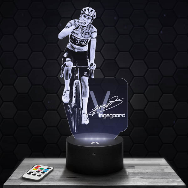 Are you looking for the perfect gift for a cycling enthusiast? Look no further! The Jonas Vingegaard Cycling 3D lamp is the ideal gift for all occasions. Whether for a birthday, Christmas, or just to please someone, this lamp will satisfy bike lovers. With its included remote control, it is possible to change the lamp’s color according to one’s desires. Furthermore, our E-commerce site “lampephoto” offers the largest catalog in Europe with over 500 models to choose from, so you will definitely find the one that meets your expectations.