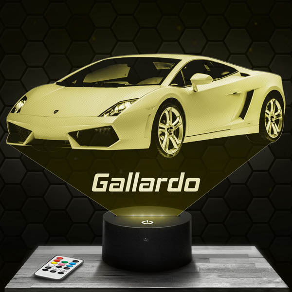 Discover our 3D “Lamborghini Gallardo” 3D lamp which will delight all lovers of sports cars and supercars. With its black LED RVB tactile light base and its remote control, this lamp offers a unique visual experience. The acrylic glass plate engraved in high definition and laser cut in our workshops in Clermont-Ferrand gives a fascinating hologram effect. Whether in the living room, the bedroom or as a desk lamp, this lamp will bring a touch of style and originality to your interior.