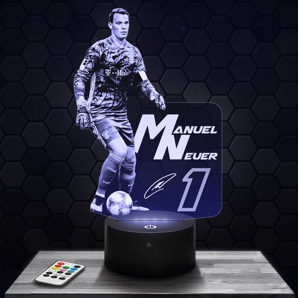 The Manuel Neuer 3D lamp is the perfect gift for any football enthusiast. Whether for a birthday or Christmas, this lamp will delight Neuer fans. The included remote control makes it easy to customize the colors, adding a legendary touch to your decor. This one-of-a-kind lamp is perfect for creating an atmosphere worthy of Neuer’s performances.