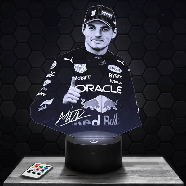 If you are an unconditional fan of Max Verstappen and Formula 1, this lamp is made for you. With its unique design highlighting the Redbull Honda driver, this lamp is a true tribute to your favorite champion. Whether for a birthday, Christmas, or simply to please a loved one, this lamp is the ideal gift. And with our catalog offering over 500 models to choose from, you will certainly find the perfect lamp for every motorsport enthusiast.