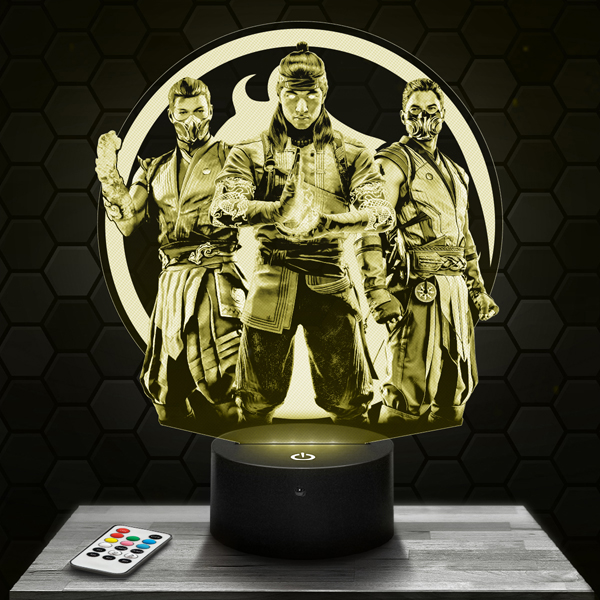 Express your passion for Mortal Kombat with this unique 3D lamp, a luminous piece that captures the intensity and power of the game’s iconic characters. Its finely engraved acrylic glass design highlights every detail of the fighters, creating an immersive and dynamic atmosphere. The touch LED base allows you to choose up to 7 colors, for a captivating and personalized ambiance.
