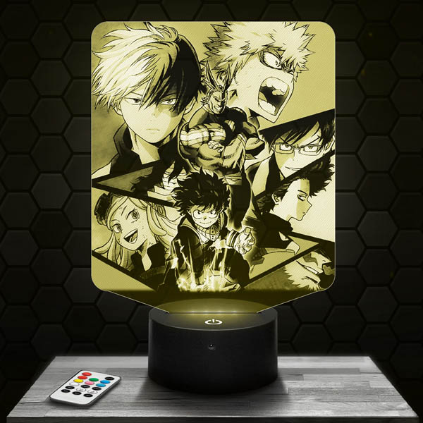 Fascinating, innovative and completely original, the My Hero Academia – Deku All Might Shoto Katsuki Endeavor 3D LED Lamp is the must-have of the moment!Our lamps consist of an engraved and laser cut plexiglass plaque and an illuminated LED base. The engraved pattern lights up when the base is switched on, giving an impressive 3D hologram effect! For the living room, bedside or desk, this lamp lends a modern touch to your home!In addition to the impressive optical illusion effect, this My Hero Academia – Deku All Might Shoto Katsuki Endeavor 3D LED lamp‘s soothing mood lighting is ideal for intimate atmospheres.Thanks to the range of illuminated bases available on Pictyourlamp.com, you can change colours whenever you like. Simply use the touch-sensitive controls on the base, or the remote control supplied with most of the bases, so you don’t even have to get up. Choose an illuminated base that features your favourite design!All our products are produced by laser engraving and cutting in our workshops located in France. We produce your orders within 24 hours (excluding weekends and holidays) and deliver to your door within 48 hours throughout Europe.In terms of electric energy consumption, all of our 3D Lamps are extremely economical. That’s because our designs consume 3 to 5 watts, which is very little for a light fixture.All our products have a 1-year guarantee. Quality is assured. If your base should be defective during this period, we will replace it as soon as possible. Nevertheless, our products are particularly reliable: the 3D lamps are designed for a minimum duration of 50,000 hours, which is equivalent to more than 5 years based on keeping the lamp on for 24 hours a day, 7 days a week, 365 days a year.Don’t wait, order your My Hero Academia – Deku All Might Shoto Katsuki Endeavor 3D LED lamp now. We will send it to you today (except weekends) and you will receive it within 48 hours.