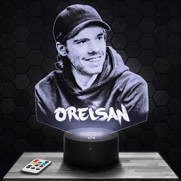 Fascinating, innovative and completely original, the Orelsan 3D LED Lamp is the must-have of the moment!Our lamps consist of an engraved and laser cut plexiglass plaque and an illuminated LED base. The engraved pattern lights up when the base is switched on, giving an impressive 3D hologram effect! For the living room, bedside or desk, this lamp lends a modern touch to your home!In addition to the impressive optical illusion effect, this Orelsan 3D LED lamp‘s soothing mood lighting is ideal for intimate atmospheres.Thanks to the range of illuminated bases available on Pictyourlamp.com, you can change colours whenever you like. Simply use the touch-sensitive controls on the base, or the remote control supplied with most of the bases, so you don’t even have to get up. Choose an illuminated base that features your favourite design!All our products are produced by laser engraving and cutting in our workshops located in France. We produce your orders within 24 hours (excluding weekends and holidays) and deliver to your door within 48 hours throughout Europe.In terms of electric energy consumption, all of our 3D Lamps are extremely economical. That’s because our designs consume 3 to 5 watts, which is very little for a light fixture.All our products have a 1-year guarantee. Quality is assured. If your base should be defective during this period, we will replace it as soon as possible. Nevertheless, our products are particularly reliable: the 3D lamps are designed for a minimum duration of 50,000 hours, which is equivalent to more than 5 years based on keeping the lamp on for 24 hours a day, 7 days a week, 365 days a year.Don’t wait, order your Orelsan 3D LED lamp now. We will send it to you today (except weekends) and you will receive it within 48 hours.