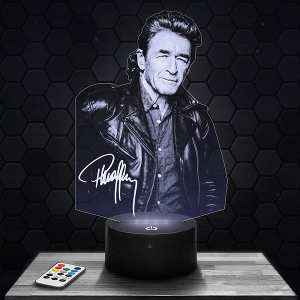Discover the Peter Maffay lamp, a true gem for fans of this famous German singer, composer, guitarist, and singer-songwriter. Thanks to our state-of-the-art technology, the acrylic glass plate engraved in high definition and laser-cut in our workshops in Clermont-Ferrand offers a stunning visual rendering. When you turn on the touch-sensitive RGB LED black base, the visual illuminates and creates a fascinating hologram effect.