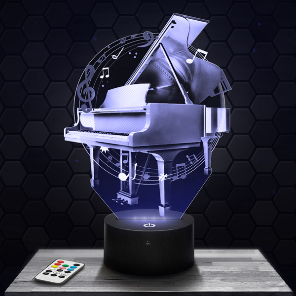 Bring a harmonious ambiance to your interior with this 3D Piano Lamp, a luminous piece that embodies the elegance and passion of music. Its finely engraved acrylic glass design highlights every detail of the piano’s keys and curves. The touch LED base allows you to choose up to 7 colors, creating a soothing and inspiring atmosphere.