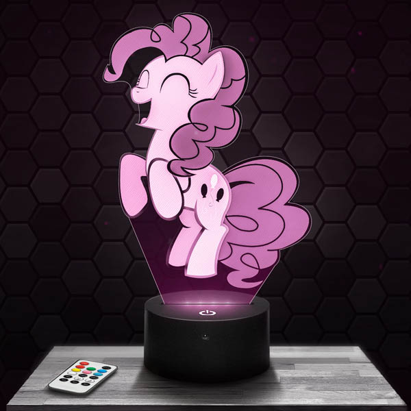 Discover the Pinkie Pie My Little Pony 3D lamp, a must-have product for all fans of the famous unicorn. With its high-definition engraved acrylic glass plate, laser-cut in our workshops in Clermont-Ferrand, this lamp offers exceptionally high-quality visuals. Its touch-sensitive RGB LED black base with a remote control allows you to choose from 7 different colors, creating a fascinating hologram effect. Whether in the living room, bedroom, or as a desk lamp, this lamp will add a magical touch to your interior. Ideal as a birthday or Christmas gift, it is a flagship accessory of the My Little Pony series.