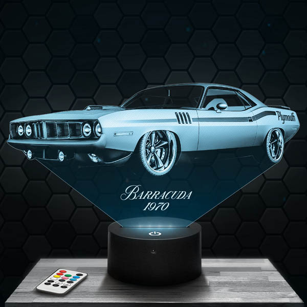 Discover the Plymouth Barracuda 3D lamp, a true gem for vintage car lovers. With its touch-sensitive RGB LED black base and high-definition engraved acrylic glass plate, this lamp offers a fascinating hologram effect that will illuminate your living room, bedroom, or office. Its elegant and modern design also makes it an ideal gift for a birthday or Christmas.