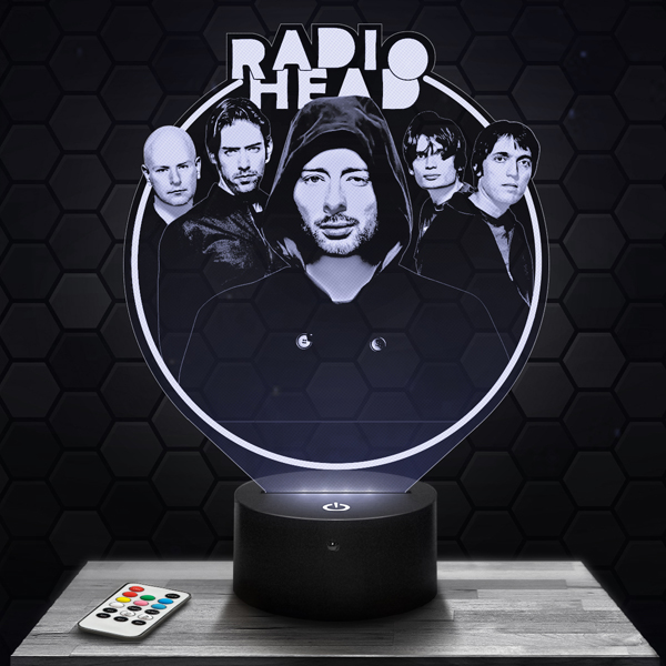 Show your passion for Radiohead with this unique 3D lamp, a luminous piece that embodies the artistic essence and sound innovation of the legendary band. Its finely engraved acrylic glass design highlights every iconic detail associated with their music. The touch LED base offers a choice of 7 colors, creating an immersive and inspiring atmosphere.