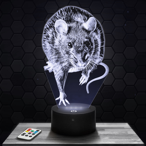 Express your admiration for the rat with this unique 3D lamp, a luminous piece that captures the intelligence and curiosity of this fascinating animal. Its finely engraved acrylic glass design highlights every detail and distinctive expression of this rodent. The touch LED base allows you to choose up to 7 colors, to create a warm and welcoming atmosphere.