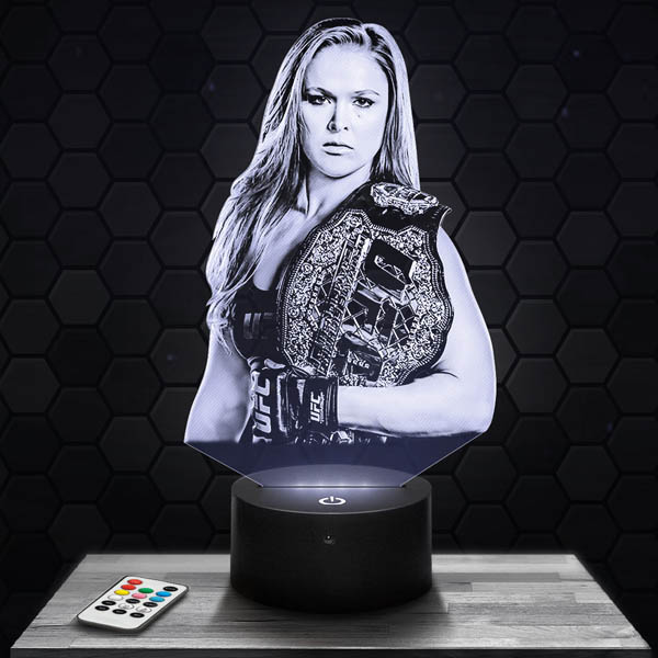 Whether for the living room, bedroom, or as a desk lamp, our Ronda Rousey UFC MMA lamp is perfect for creating a unique atmosphere. It also makes an original birthday or Christmas gift for fans of Ronda Rousey and mixed martial arts. With our catalog of over 500 models to choose from, you will certainly find one that suits your tastes.