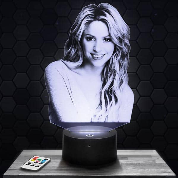Fascinating, innovative and completely original, the Shakira 3D LED Lamp is the must-have of the moment!Our lamps consist of an engraved and laser cut plexiglass plaque and an illuminated LED base. The engraved pattern lights up when the base is switched on, giving an impressive 3D hologram effect! For the living room, bedside or desk, this lamp lends a modern touch to your home!In addition to the impressive optical illusion effect, this Shakira 3D LED lamp‘s soothing mood lighting is ideal for intimate atmospheres.Thanks to the range of illuminated bases available on Pictyourlamp.com, you can change colours whenever you like. Simply use the touch-sensitive controls on the base, or the remote control supplied with most of the bases, so you don’t even have to get up. Choose an illuminated base that features your favourite design!All our products are produced by laser engraving and cutting in our workshops located in France. We produce your orders within 24 hours (excluding weekends and holidays) and deliver to your door within 48 hours throughout Europe.In terms of electric energy consumption, all of our 3D Lamps are extremely economical. That’s because our designs consume 3 to 5 watts, which is very little for a light fixture.All our products have a 1-year guarantee. Quality is assured. If your base should be defective during this period, we will replace it as soon as possible. Nevertheless, our products are particularly reliable: the 3D lamps are designed for a minimum duration of 50,000 hours, which is equivalent to more than 5 years based on keeping the lamp on for 24 hours a day, 7 days a week, 365 days a year.Don’t wait, order your Shakira 3D LED lamp now. We will send it to you today (except weekends) and you will receive it within 48 hours.