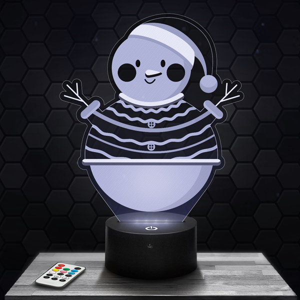 Bring the magic of winter into your home with this 3D Snowman Lamp, a luminous piece that captures all the joy and friendliness of the season. Its finely engraved acrylic glass design highlights every detail of the snowman, from the coal buttons to its welcoming smile. The touch LED base allows you to choose up to 7 colors, for a warm and festive atmosphere.