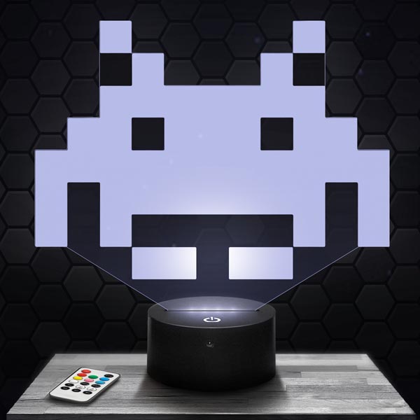 Relive the golden age of gaming with our Space Invaders 3D lamp, a luminous celebration of one of the first and most influential video games. Featuring an acrylic engraving that captures the essence of this classic, this lamp with an RGB LED base navigates through seven colors, recreating the excitement of space battles in your own space.