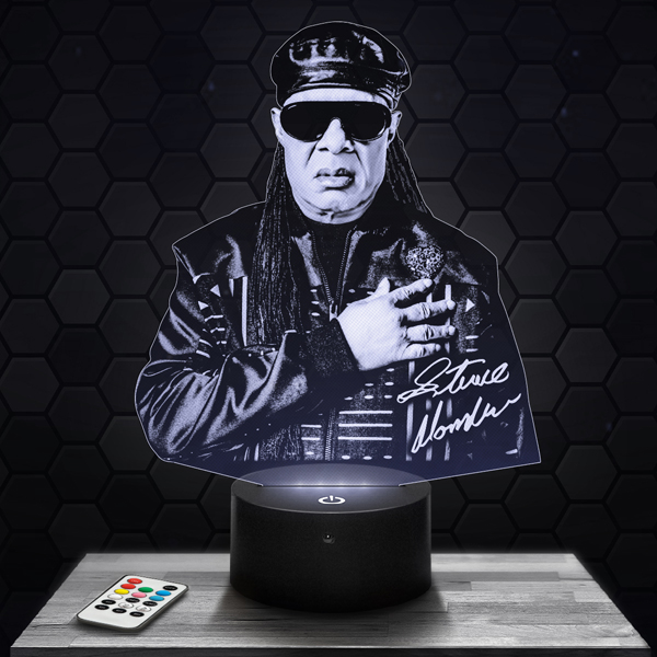 Bring a harmonious ambiance to your interior with this Stevie Wonder lamp, a luminous piece that embodies the spirit and talent of this legendary musician. Its elegant and modern design, combined with quality materials, creates a unique and inspiring atmosphere. The touch LED base offers a choice of 7 colors, allowing you to customize the lighting according to your mood.